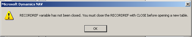 Recordref variable has not been closed...