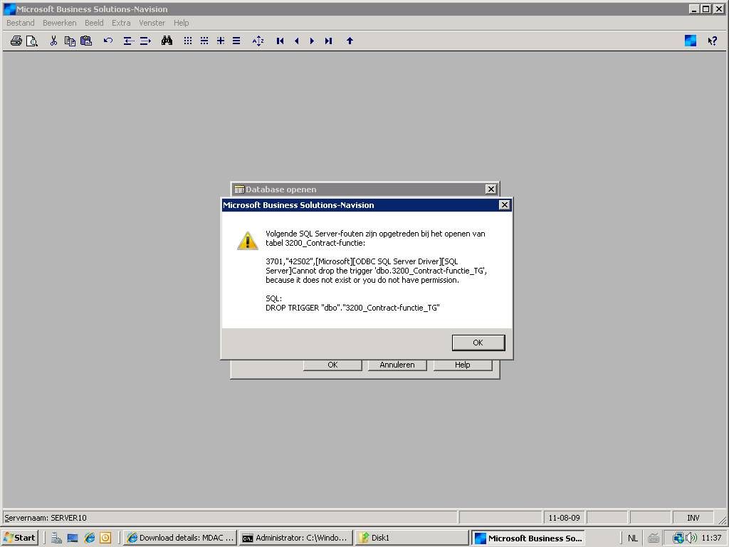 Or some trigger has been deleted directly in SQL. If there are no data in the table, try to delete the table. (you have to connect with NAV through a Win2003 or XP machine).Regards,Alain Krikilion